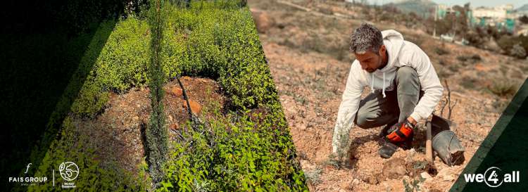 Μέρος της δράσης του We4ALL είναι και οι δενδροφυτεύσεις. Στο πλαίσιο αυτό, και με τη στήριξη του Ομίλου ως Supporter, προχώρησε μέσα στον Οκτώβριο στη φύτευση 50 δέντρων (κυπαρίσσια, δάφνες Απόλλωνα, κουτσουπιές και χαρουπιές) στην καμένη δασική περιοχή στις Ροβιές Ευβοίας. Η επιλογή δεν ήταν τυχαία, μιας και τα συγκεκριμένα είδη είναι βραδύκαυστα, ανθεκτικά και εναρμονίζονται εύκολα με το εκάστοτε οικοσύστημα.