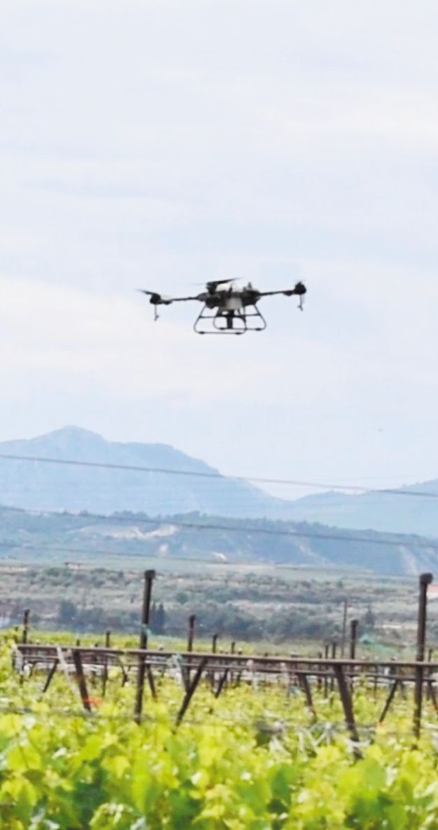 Στη 2η εκδήλωση επίδειξης σε ελληνικούς αμπελώνες στην περιοχή του Κιάτου, στο πλαίσιο της επίδειξης εναλλακτικών μεθόδων καταπολέμησης ζιζανίων του έργου, παρουσιάστηκε η περίπτωση των ψεκαστικών μη επανδρωμένων εναέριων αεροσκαφών (Spraying UAVs).