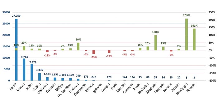 Στην 5η θέση σε πλήθος η Ελλάδα