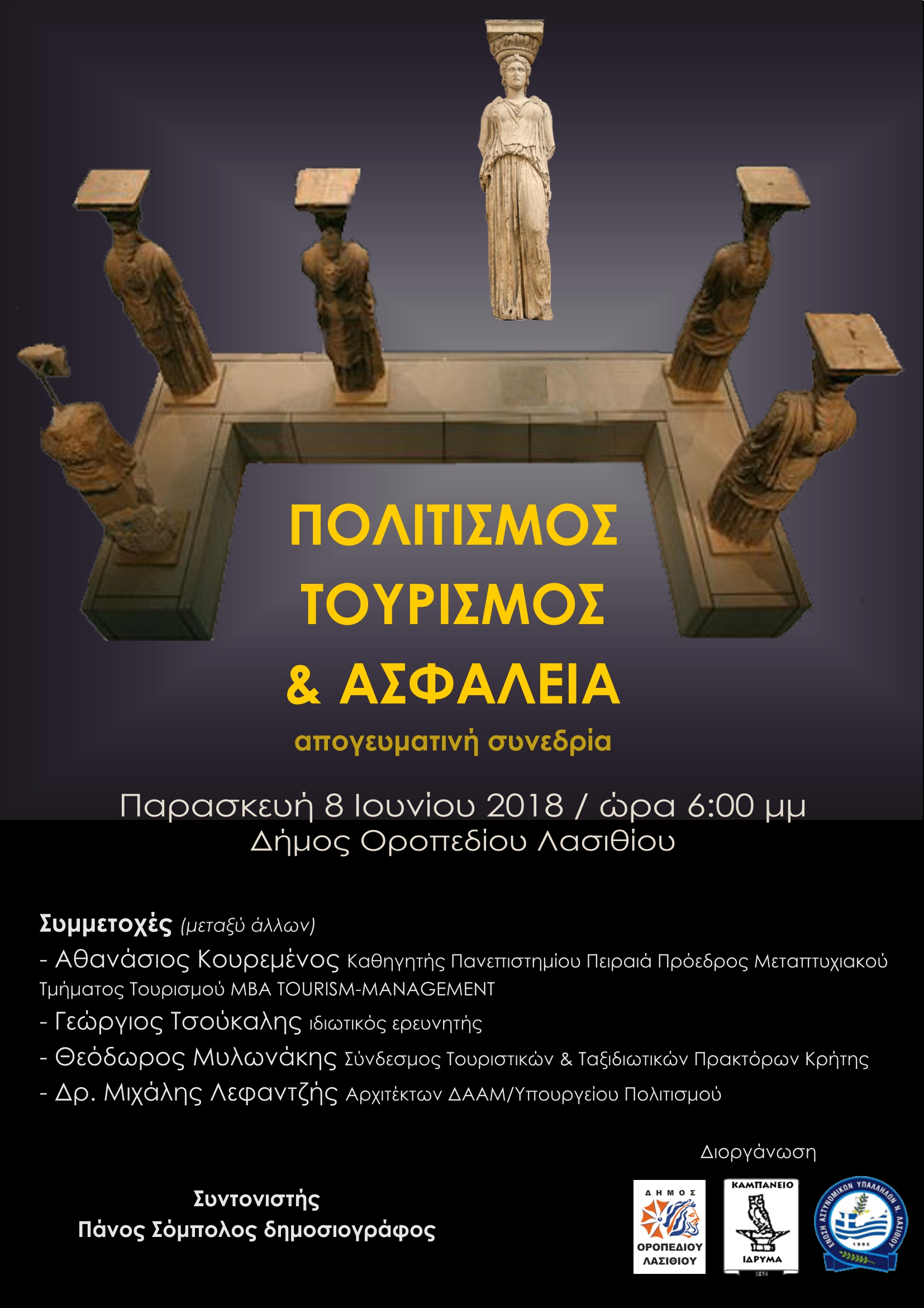 O Δήμος Οροπεδίου Λασιθίου, το Καμπάνειο Ίδρυμα και η Ένωση Αστυνομικών Υπαλλήλων Νομού Λασιθίου συνδιοργανώνουν εκδήλωση-εσπερίδα με θέμα «Πολιτισμός, Τουρισμός και Ασφάλεια» με ελεύθερη είσοδο για τους πολίτες, την Παρασκευή 8 Ιουνίου στις 6 το απόγευμα στο Οροπέδιο Λασιθίου.
