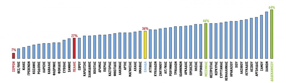 Στους νομούς Λευκάδος, Λασιθίου, Χίου, Ηρακλείου και Κεφαλληνίας έχουν οριστικοποιηθεί περίπου οι μισές από τις δηλώσεις. Ανησυχητική είναι η εικόνα πάντως στη Βόρεια Ελλάδα, με τον Νομό Σερρών να παραμένει στην τελευταία θέση ως προς τη ροή, καθώς μέχρι στιγμής έχει οριστικοποιηθεί μόλις το 7% των δηλώσεων. Χαμηλά τα ποσοστά στους νομούς Θεσσαλονίκης (13%), Κιλκίς (15%), Γρεβενών (16%) και Κοζάνης (18%). Σε χαμηλή κατάταξη και οι νομοί Λαρίσης και Καβάλας, όπου έχει οριστικοποιηθεί μόλις το 20% των δηλώσεων.