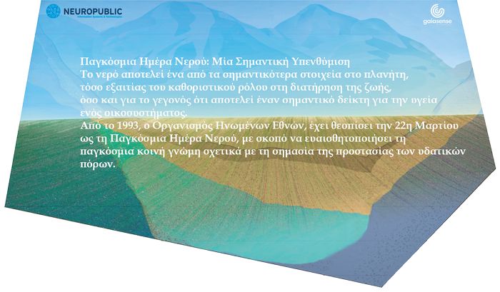gaiasense, η ευφυής λύση ενάντια στην υπεράρδευσηΗ ελληνική εταιρεία Πληροφορικής και Τεχνολογίας NEUROPUBLIC συμβάλλει στην προστασία του περιβάλλοντος και στην εξοικονόμηση φυσικών πόρων μέσα από το σύστημα ευφυούς γεωργίας gaiasense. Συγκεκριμένα, στις βασικές υπηρεσίες του καινοτόμου συστήματος περιλαμβάνεται και η διαχείριση του αρδευτικού νερού, αλλά και της λίπανσης, γεγονός που μπορεί να συντελέσει σημαντικά –τόσο βραχυπρόθεσμα όσο και μακροπρόθεσμα– στη βελτίωση της ποιότητας του υδροφόρου ορίζοντα. Χάρη σε συγκεκριμένους δείκτες και ειδοποιήσεις που παρέχει το gaiasense, ο αγρότης έχει ξεκάθαρη εικόνα για το τι συμβαίνει στο χωράφι του. Έτσι, μπορεί να δει πότε είναι η κατάλληλη στιγμή για να ποτιστούν οι καλλιέργειες με την ακριβή ποσότητα. Αποτέλεσμα; Αποφεύγεται η σπατάλη νερού και η έκπλυση των λιπασμάτων που απομακρύνονται από την περιοχή του ενεργού ριζικού συστήματος προς τον υδροφόρο ορίζοντα. Και το κέρδος είναι πολλαπλό: μειωμένες εισροές, χαμηλότερο κόστος, πιο «πράσινη» παραγωγή. |