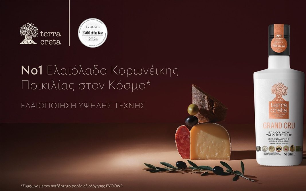 Το Εξαιρετικό Παρθένο Ελαιόλαδο Terra Creta Grand Cru αναδείχθηκε ως το Νο 1 ελαιόλαδο Κορωνέικης ποικιλίας παγκοσμίως* για το 2024, σύμφωνα με το EVOOWR (EVOO World Ranking), μία κορυφαία διάκριση που κατακτά σταθερά κάθε χρόνο από το 2020. Το πιο πολυβραβευμένο ελληνικό εξαιρετικό παρθένο ελαιόλαδο ξεχώρισε για τα εξαιρετικά οργανοληπτικά του χαρακτηριστικά: νότες πράσινων φύλλων, λουλουδιών, φρέσκου αμύγδαλου, πράσινου πιπεριού και άγριων βοτάνων. Αυτή η κορυφαία διάκριση επισφραγίζει τη σταθερή δέσμευση της Terra Creta να προσφέρει ένα ελαιόλαδο εξαιρετικής ποιότητας, που παράγεται με τεχνογνωσία και μεράκι.