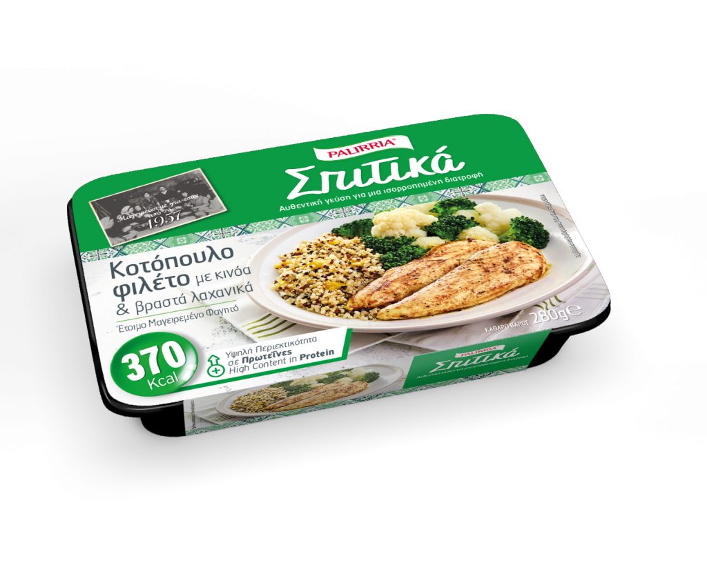 Η Palirria δίνοντας ιδιαίτερη έμφαση στην καινοτομία δημιούργησε τη νέα σειρά έτοιμων γευμάτων ψυγείου «Σπιτικά» με χαμηλές θερμίδες ανταποκρινόμενη στην ανάγκη των καταναλωτών για έναν πιο υγιεινό τρόπο ζωής. Τα 5 νέα έτοιμα γεύματα «Σπιτικά» με χαμηλές θερμίδες είναι μαγειρεμένα από άριστης ποιότητας πρώτες ύλες, με υψηλή περιεκτικότητα σε πρωτεΐνες ενώ δεν περιέχουν συντηρητικά. Εκτός από το βραβευμένο «Φιλέτο κοτόπουλο με κινόα και βραστά λαχανικά», η σειρά περιλαμβάνει: