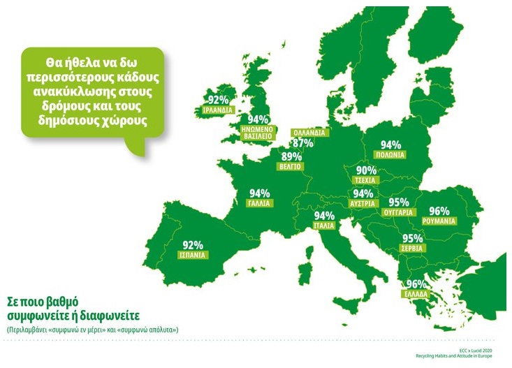 Πανευρωπαϊκή έρευνα: Το 96% των Ελλήνων ζητάει περισσότερους κάδους ανακύκλωσης σε δημόσιους χώρους