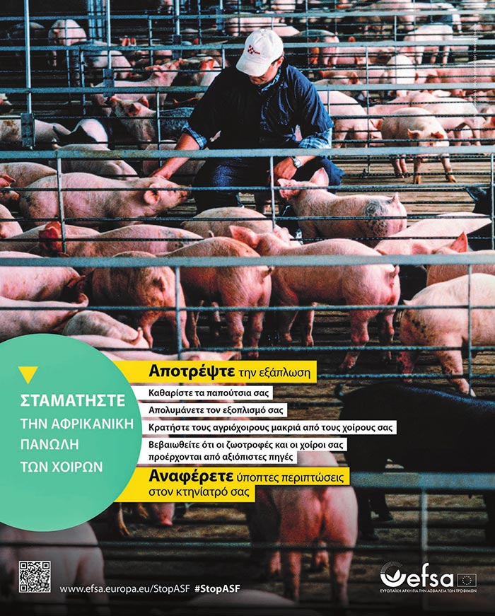 Η Ευρωπαϊκή Αρχή για την Ασφάλεια των Τροφίμων (EFSA), το Υπουργείο Αγροτικής Ανάπτυξης και Τροφίμων (ΥΠΑΑΤ) και ο Ενιαίος Φορέας Ελέγχου Τροφίμων (Ε.Φ.Ε.Τ.) ως εστιακό σημείο της EFSA στην Ελλάδα, συμμετέχουν για τέταρτη χρονιά, στην πανευρωπαϊκή εκστρατεία για την υποστήριξη της καταπολέμησης της Αφρικανικής Πανώλους των Χοίρων (ΑΠΧ).