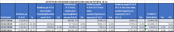 Ακολουθεί ο συγκεντρωτικός διαχρονικός πίνακας των εκτάσεων του ελληνικού αμπελώνα με οινοποιήσιμες ποικιλίες: