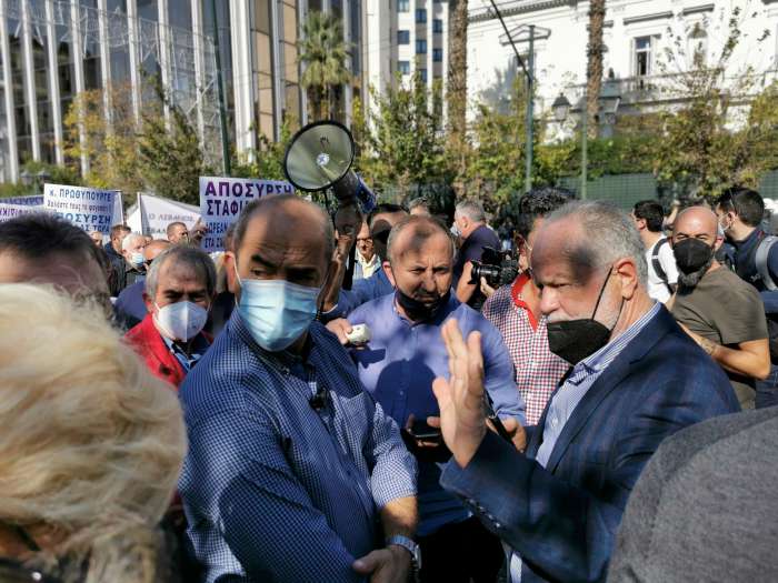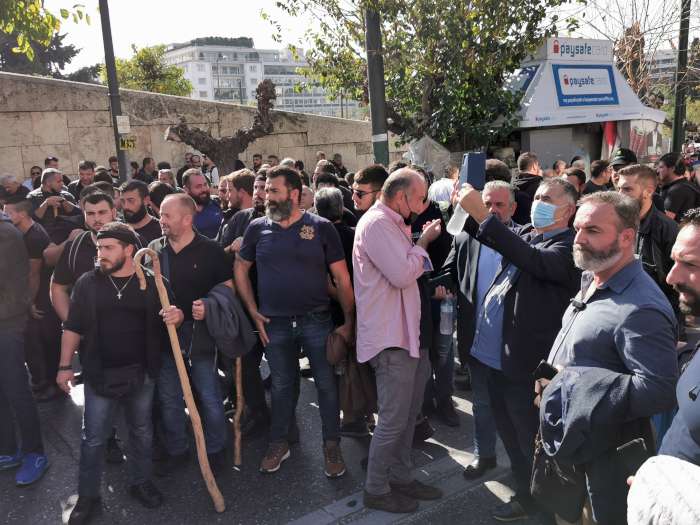 Στη συγκέντρωση δεν άργησαν να προστεθούν και γεωργοί και κτηνοτρόφοι από την Κρήτη, που επίσης βρέθηκαν στην Αθήνα, μετά τη συνάντηση που πραγματοποίησαν στο ΥΠΑΑΤ με εκπροσώπους της ηγεσίας του.