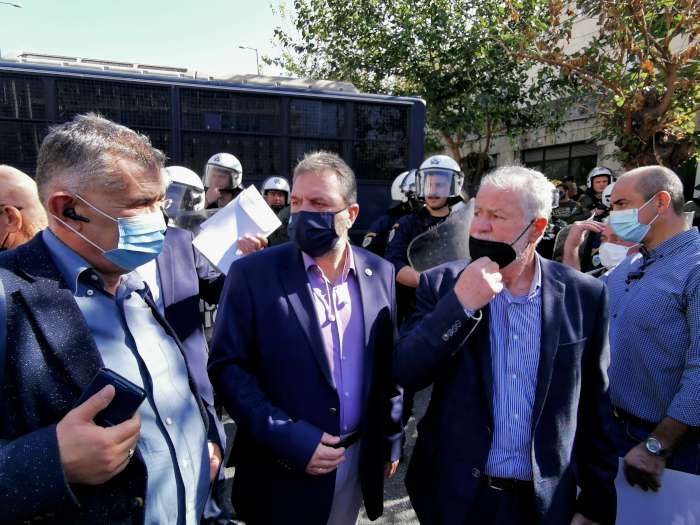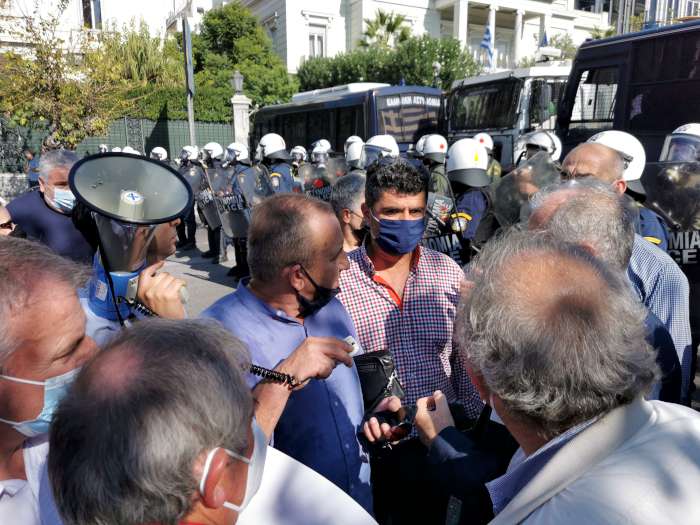 Οι παραγωγοί δεν μπόρεσαν να περάσουν το αστυνομικό μπλόκο και να συνεχίσουν την πορεία τους προς το Μαξίμου, όμως, οι αρχές επέτρεψαν σε πενταμελή επιτροπή των συντονιστών να περάσουν και να επιδώσουν το ψήφισμά τους στο γραφείο του πρωθυπουργού αλλά και στα γραφεία των κομμάτων στη Βουλή. Κατόρθωσαν μάλιστα να κανονίσουν ραντεβού για να ενημερώσουν τον ίδιο τον πρωθυπουργό την Τρίτη, όπως ανακοινώθηκε κατά την έξοδό τους.