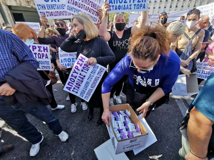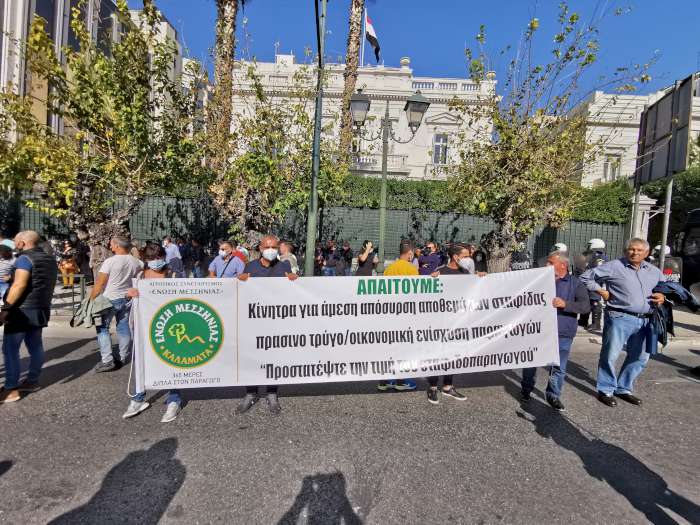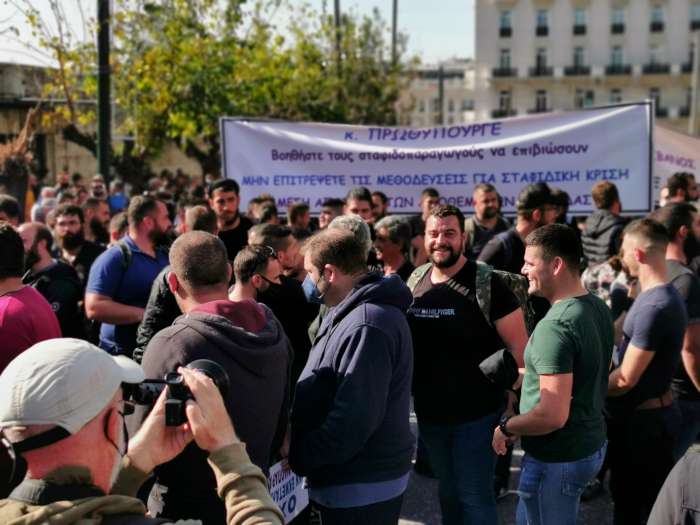 Οι παραγωγοί παρέμειναν για αρκετή ώρα επί της Βασ. Σοφίας, δίπλα στη Βουλή, πραγματοποιώντας ειρηνική διαμαρτυρία, μοιράζοντας σταφίδες και φωνάζοντας συνθήματα υπέρ του «δίκαιου αγώνα τους», ζητώντας απόσυρση προϊόντος και στήριξη, όπως ανέφεραν, για «πρώτη φορά» των σταφιδοπαραγωγών καθώς το εξαγώγιμο προϊόν τους έχει υποστεί σημαντική ζημιά στο πλαίσιο της κρίσης του κορωνοϊού.