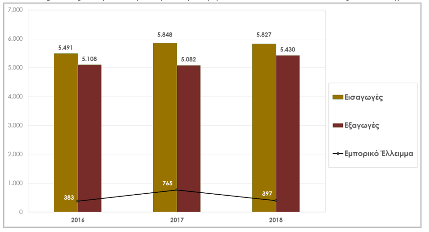 Πίνακας 1 Εξωτερικό εμπόριο τροφίμων & ποτών Ελλάδας, διάστημα:2016-2018, σε εκατ.€