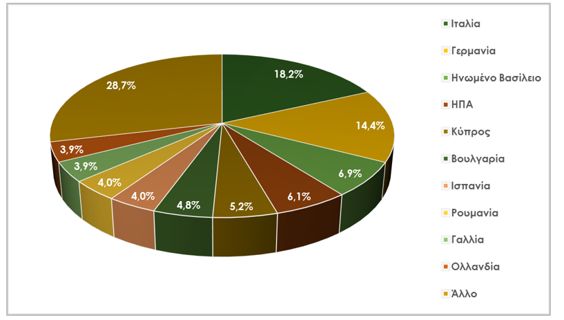 Πίνακας 3. Μερίδιο κυριότερων εξαγωγικών προορισμών κλάδου τροφίμων & ποτών, 2018