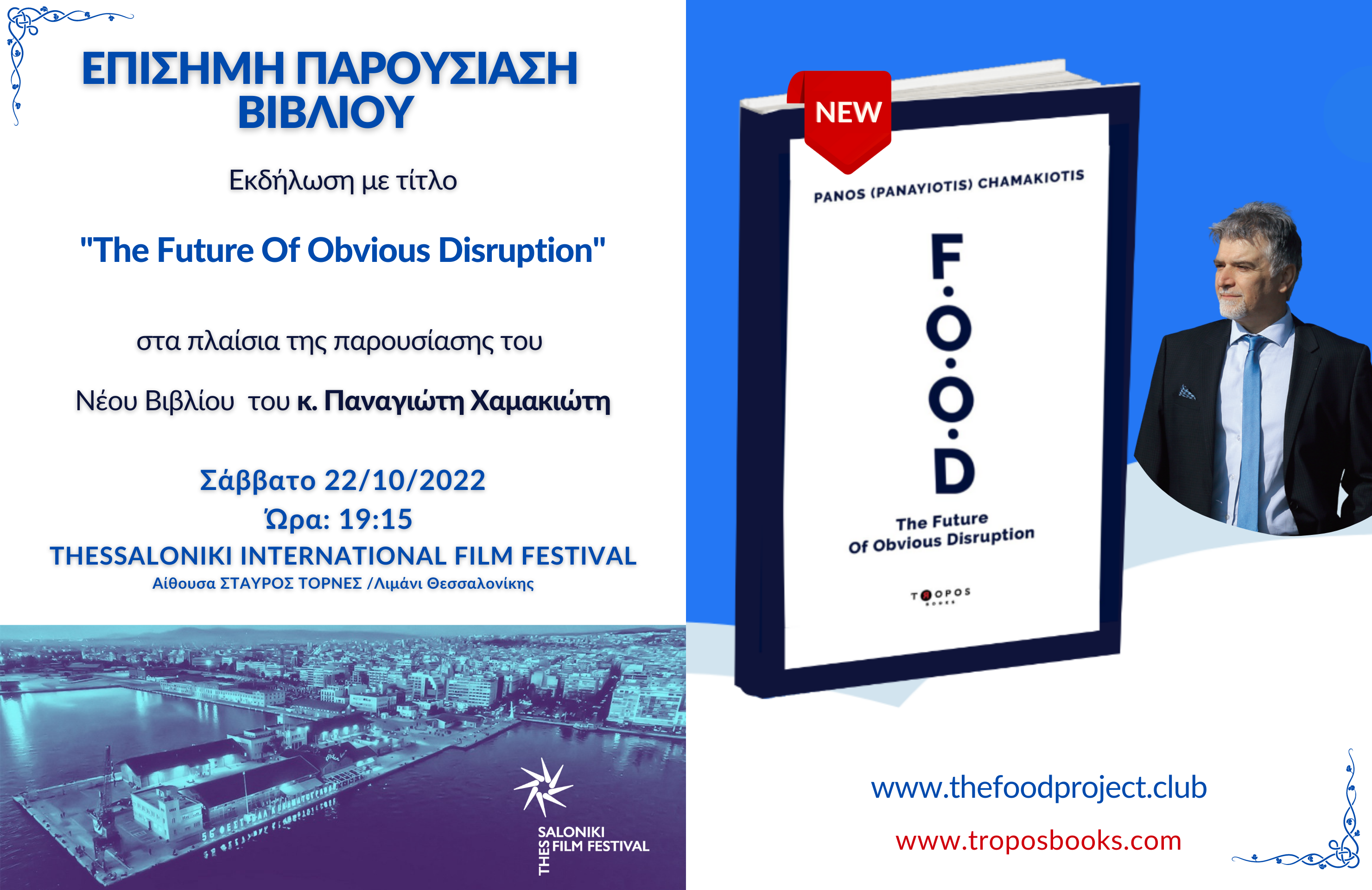 Τις εκδηλώσεις μας θα ολοκληρώσει η παρουσίαση του νέου βιβλίου του διευθύνοντα συμβούλου της COMPO EXPERT Ευρώπης, Μέσης Ανατολής και Αφρικής, κ. Παναγιώτη Χαμακιώτη, στην αίθουσα του Διεθνούς Φεστιβάλ Κινηματογράφου Θεσσαλονίκης στο Λιμάνι το Σάββατο 22/10/2022 και ώρα 19.00 – 21.00. Η παρουσίαση λαμβάνει χώρα με ένα πάνελ διακεκριμένων καλεσμένων από τον χώρο της γεωργίας και της πολιτικής. Το δεύτερο βιβλίο του, με τίτλο “F.O.O.D: The Future Of Obvious Disruption’’, πραγματεύεται ζητήματα ομάδας και ηγεσίας του άμεσου μέλλοντος, πάνω στους πυλώνες της Γεωργίας, του Αγροτικού Τροφίμου και του Περιβάλλοντος, λαμβάνοντας υπόψη τις μεγάλες προκλήσεις που έχει να διαχειριστεί η Παγκόσμια βιομηχανία διαμέσου των κρίσεων που βιώνουμε.