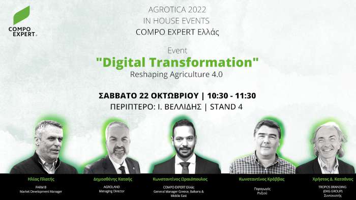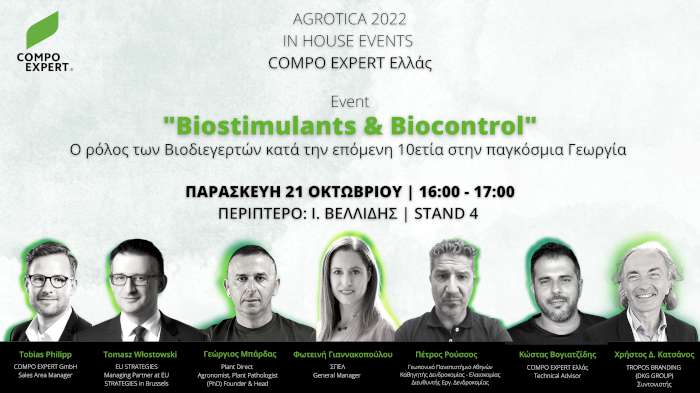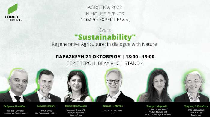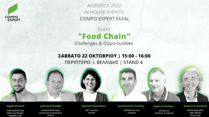 Η COMPO EXPERT αξιοποιεί και το 2022 τον θεσμό της AGROTICA, διοργανώνοντας μια σειρά από εκδηλώσεις στο περίπτερο της, στο Συνεδριακό Κέντρο ”Ιωάννης Βελλίδης”, στις 21 & 22 Οκτωβρίου.