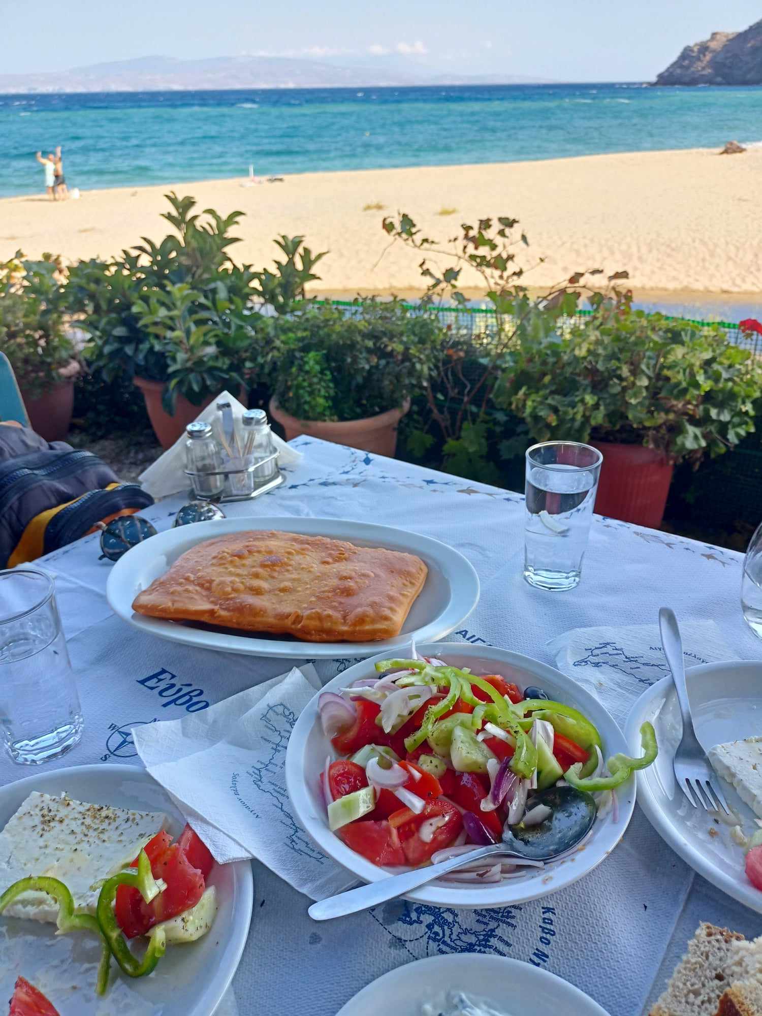 Στο χωριό Ζωοδόχος Πηγή συναντάμε τη «ταβέρνα του Μπάρμπα Γιώργη-Ρεούζι» ενώ μερικά χιλιόμετρα πιο πέρα το εστιατόριο «Κάβο Αλμυρίχι» πάνω από την ομώνυμη παραλία. Στο κέντρο του νησιού και συγκεκριμένα στον Αμάρυνθο, αν είστε λάτρεις των θαλασσινών υπάρχουν οι επιλογές του «Gorgona di Stefano» και της ταβέρνας «Λιμανάκι».