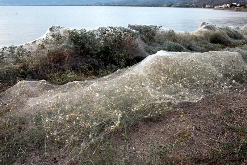 Ένα περίεργο και πρωτόγνωρο φαινόμενο σημειώθηκε στη λιμνοθάλασσα στο Αιτωλικό. Συγκεκριμένα στην ανατολική παραλία της λιμνοθάλασσας, υπάρχει ένα τεράστιο πέπλο από αράχνες που έχει καλύψει τα φυτά (φοίνικες, αρμυρίκια και ποώδη βλάστηση) σε μήκος τουλάχιστο 300 μέτρων.