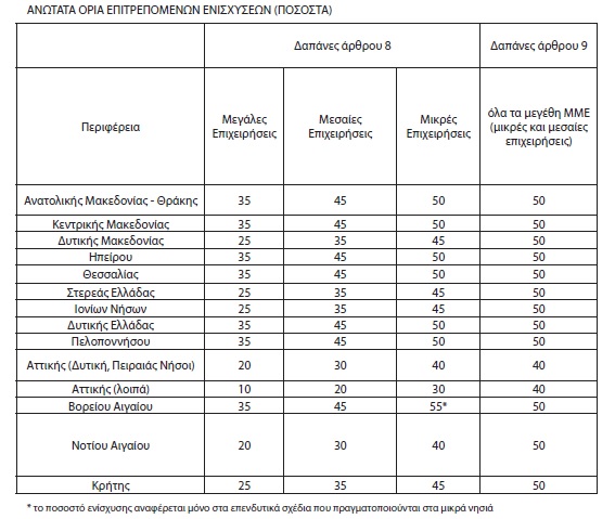 Επισημαίνεται ότι τα επενδυτικά σχέδια μπορούν να αφορούν είτε σε ίδρυση νέας μονάδας, είτε σε επέκταση υφιστάμενης μονάδας, είτε σε εκσυγχρονισμό με ή χωρίς μετεγκατάσταση υφιστάμενης μονάδας. Όσο για το ανώτατο ποσοστό ενίσχυσης για την υπαγωγή στο εν λόγω καθεστώς των επενδυτικών σχεδίων, αυτό ανέρχεται έως και στο 55% του ποσού των επιλέξιμων δαπανών.