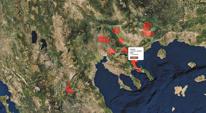 Περιοχές της Ελλάδας με επιβεβαιωμένη  |
