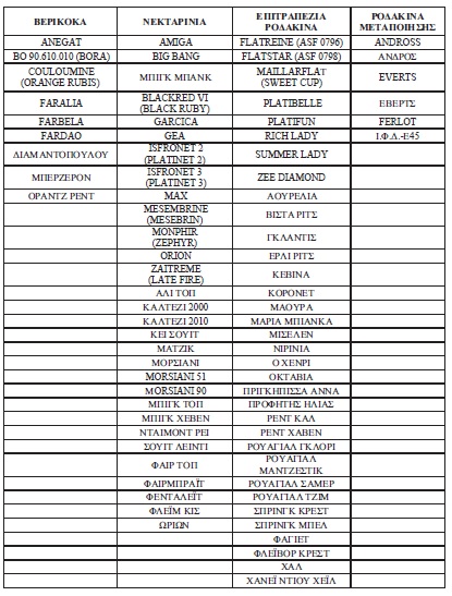Ακολουθούν οι επιλέξιμες ποικιλίες ανά καλλιέργεια
