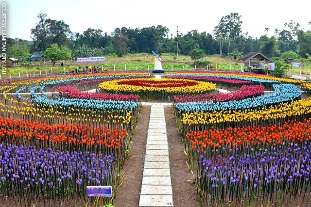 Ο κήπος από τουλίπες, που εγκαινιάστηκε τη Δευτέρα, δημιουργήθηκε από 26.877 μπουκάλια που συγκεντρώθηκαν από 45 χωριά γύρω από την πόλη Λαμιτάν στο Μπασιλάν, μια νησιωτική επαρχία στο νοτιοδυτικό άκρο του αρχιπελάγους.