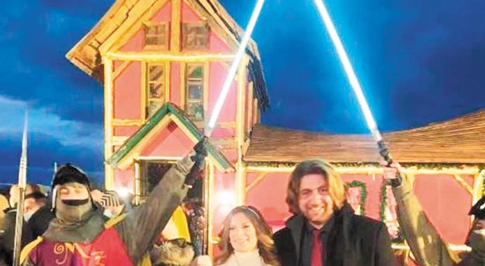 Τον «Μύλο των Ξωτικών» επέλεξε και ένα νεαρό ζευγάρι από τη Λάρισα, για να ανταλλάξει όρκους αιώνιας πίστης και αγάπης. Ο Γιάννης Γεραποστόλου και η Κωνσταντίνα Μπέζα (φωτό) παντρεύτηκαν με πολιτικό γάμο κάτω από τα… σπαθιά των ιπποτών του Μύλου, τον οποίο τέλεσε ο αντιδήμαρχος Τρικκαίων, Βασίλης Κρανιάς, μέσα σε ένα πανηγυρικό κλίμα και σε ένα ρομαντικό περιβάλλον.