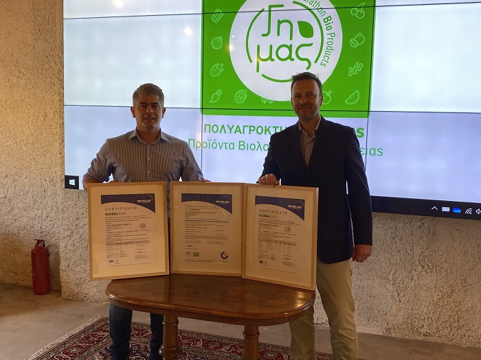 Η απονομή των σχετικών πιστοποιητικών, πραγματοποιήθηκε σε ειδική εκδήλωση στον πρότυπο χώρο του Πολυαγροκτήματος «Γη μας» έκτασης 250 στρεμμάτων στον Μαραθώνα Αττικής, από τον κύριο Θωμά Αραπογιάννη, Vice President Agro της TÜV HELLAS (TÜV NORD).