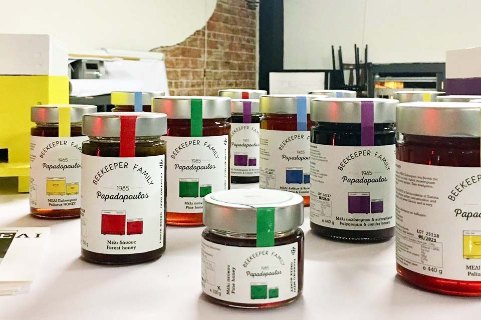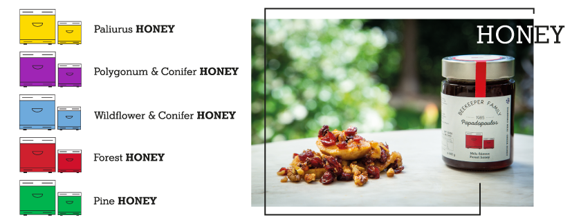 Κάθε ποικιλία μελιού που παράγουν χαρακτηρίζεται από το δικό της χρώμα κυψέλης στην ετικέτα της συσκευασίας. Πιο συγκεκριμένα, το μπλε αφορά το μέλι ανθέων και κωνοφόρων από τα βουνά της Καστοριάς και της Χαλκιδικής, το κόκκινο αντιπροσωπεύει το μέλι δάσους από τα βουνά της Βορειοδυτικής Καστοριάς και το πράσινο αφορά το μέλι πεύκου από τα πευκοδάση της ορεινής Χαλκιδικής.