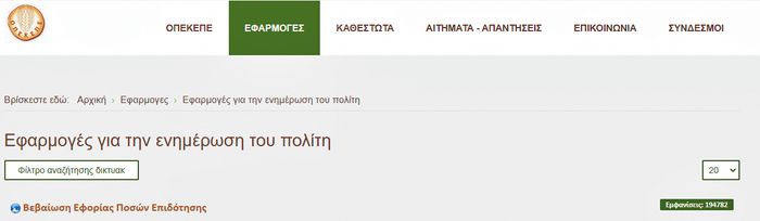 Από την επίσημη σελίδα του ΟΠΕΚΕΠΕ (www.opekepe.gr) και επιλέγοντας από το μενού «Εφαρμογές» την υποκατηγορία «Εφαρμογές για την Ενημέρωση του Πολίτη» και στη συνέχεια τη «Βεβαίωση Εφορίας Ποσών Επιδότησης», κάνοντας χρήση των προσωπικών κωδικών taxis μπορούμε να εκτυπώσουμε τη σχετική βεβαίωση (βλ. εικόνα 1).