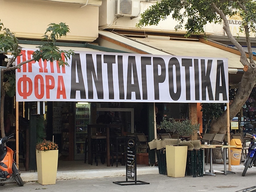 Εκτός από τις στιγμές έντασης στο δημαρχείο Φαιστού στις Μοίρες την παράσταση έκλεψαν και κάποια πανό που αναρτήθηκαν με αφορμή την επίσκεψη Τσίπρα στην Κρήτη. «Αύξηση στον ΟΓΑ, αύξηση στον ΦΠΑ, αύξηση στα εφόδια. Δεν αντέχουμε άλλο», ήταν ένα από αυτά!