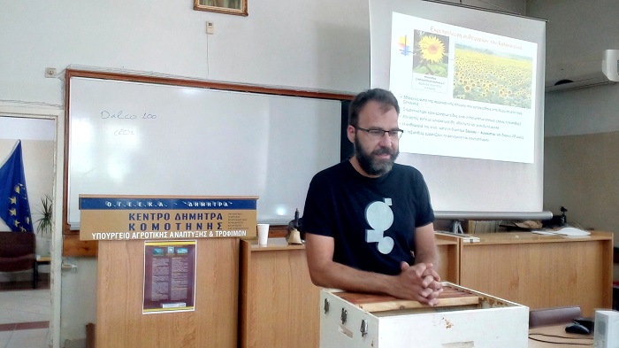 Μελισσοκομικό σεμινάριο, χρηματοδοτούμενο από το υπουργείο Αγροτικής Ανάπτυξης, πραγματοποιήθηκε από τις 27 έως τις 29 Ιουνίου στην Κομοτηνή, στο Κέντρο ΕΛΓΟ ΔΗΜΗΤΡΑ με προσκεκλημένο ομιλητή τον Λέκτορα του Γεωπονικού Πανεπιστημίου Αθηνών Γιώργο Γκόρα. Οι θεματικές ενότητες που αναπτύχθηκαν στη διάρκεια της εκπαίδευσης που στηρίχτηκε από τον Μελισσοκομικό Σύλλογο Ν. Ροδόπης «Το Κεντρί» ήταν «Η μέλισσα, Μελισσοκομικοί χειρισμοί και Ασθένειες μελισσών». Το ενδιαφέρον των συμμετεχόντων προσανατόλισε το σεμινάριο και σε άλλα αντικείμενα όπως η βασιλοτροφεία και οι τροφοδοσίες των μελισσιών, σύμφωνα με τα όσα μετέφερε στο www.ypaithros.gr ο ομιλητής.