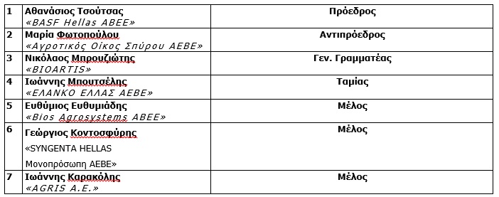 Κατόπιν ψηφοφορίας, το νέο 7-μελές Διοικητικό Συμβούλιο συγκροτήθηκε σε Σώμα ως ακολούθως: