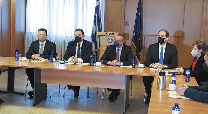 Μετά τη συνάντησή της με τους αγρότες που συμμετέχουν στα μπλόκα, η πολιτική ηγεσία του ΥΠΑΑΤ πραγματοποίησε σύσκεψη με το προεδρείο του Συνδέσμου Ελληνικής Κτηνοτροφίας (Παναγιώτης Πεβερέτος – πρόεδρος, Γιώργος Διδάγγελος – αντιπρόεδρος αρμόδιος για τη χοιροτροφία και Δημήτρης Μόσχος – αντιπρόεδρος και αρμόδιος για την αιγοπροβατοτροφία).