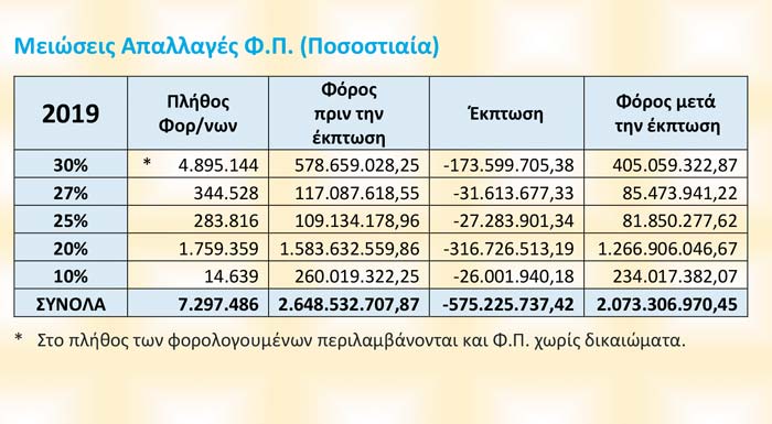 ✱ Την έκπτωση του 27% εξασφάλισαν περίπου 344.000 φορολογούμενοι με ακίνητη περιουσία από 60.000 ευρώ έως 70.000 ευρώ, οι οποίοι είχαν όφελος 31,61 εκατ. ευρώ και θα πρέπει να καταβάλουν 85,47 εκατ. ευρώ.