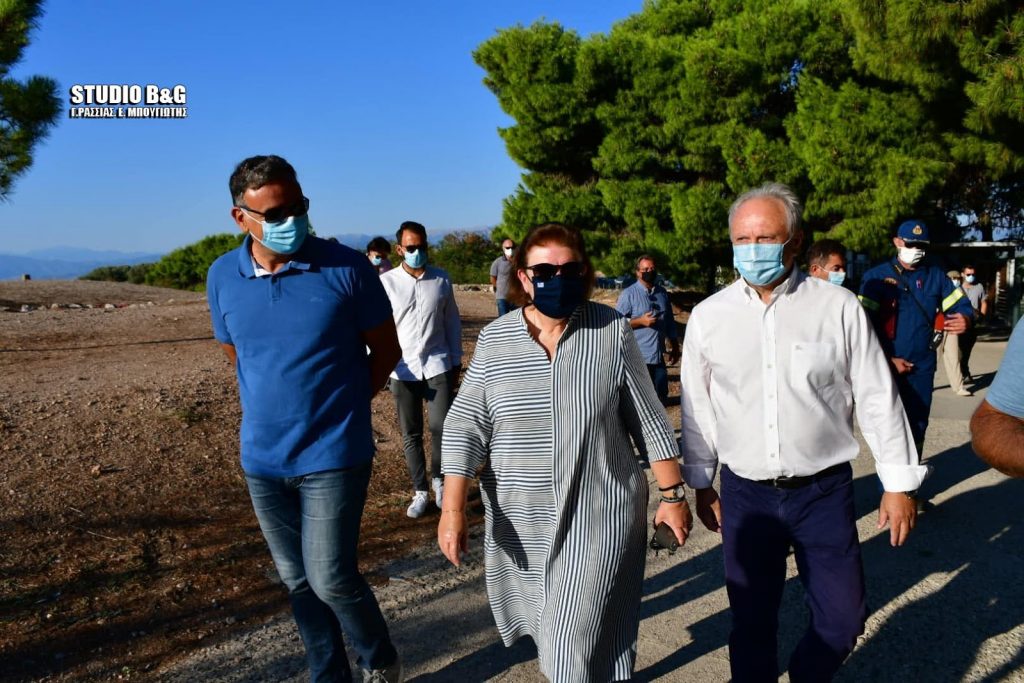 Από το πρωί βρίσκεται σε εξέλιξη αυτοψία και σύσκεψη της Υπουργού Πολιτισμού Λίνας Μενδώνη και του Γ.Γ. Πολιτισμού Γ. Διδασκάλου με υπηρεσιακούς παράγοντες της ΕΦΑ Αργολίδας, τον βουλευτή Αργολίδας Γ. Ανδριανό, τον Αντιπεριφερειάρχη Αργολίδας Ι. Μαλτέζο και τον Δήμαρχο Άργους Μυκηνών Δ. Καμπόσο, για την εκτίμηση της κατάστασης μετά την χθεσινή πυρκαγιά.
