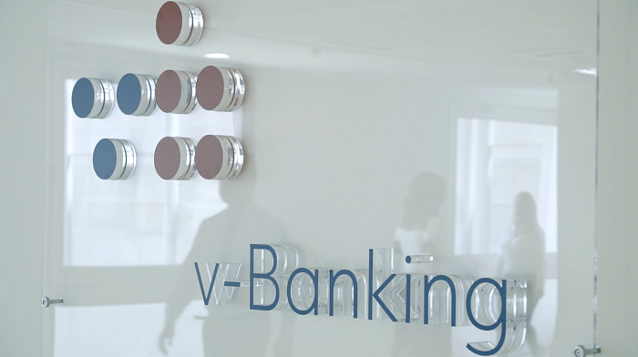 Η καινοτόμος υπηρεσία v–Banking, μοναδική σε ευρωπαϊκό επίπεδο, εκσυγχρονίζει τις τραπεζικές συναλλαγές, δίνοντας προτεραιότητα στον επιχειρηματία και την επιχείρηση. Οι πελάτες της Eurobank έχουν πλέον τη δυνατότητα προσωποποιημένης εξυπηρέτησης σε ασφαλές ψηφιακό περιβάλλον, από εξειδικευμένους συμβούλους, μέσω video κλήσης υψηλής ευκρίνειας, χωρίς να χρειάζεται να επισκεφτούν κάποιο κατάστημα της Τράπεζας. Έτσι, καλύπτονται οι ανάγκες της επιχείρησης, ενώ μειώνονται οι λειτουργικές δαπάνες και ο χρόνος εκτέλεσης καθημερινών εργασιών. Μέσω της πλατφόρμας ηλεκτρονικής τραπεζικής παρέχονται: άμεση εξυπηρέτηση χωρίς αναμονή, ανταλλαγή και επεξεργασία εγγράφων σε πραγματικό χρόνο, διαδραστικό ημερολόγιο για προγραμματισμό συναντήσεων, συμβουλευτικές υπηρεσίες και υποστήριξη, περιήγηση και διαδραστικές παρουσιάσεις χρηματοοικονομικών τραπεζικών προϊόντων και εξατομικευμένη επικοινωνία μέσω chat και e-mail.