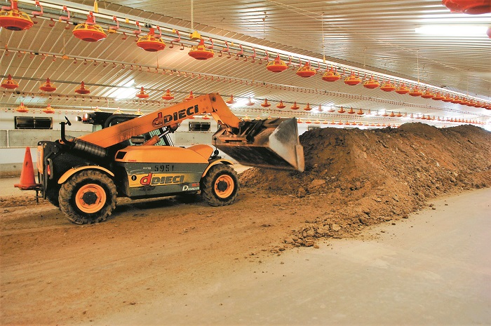 3 Απομάκρυνση εξοπλισμού και απορριμμάτων. Ένα κύριο στάδιο πριν από τον ενδελεχή καθαρισμό είναι η απομάκρυνση όλου του εξοπλισμού και των απορριμμάτων από το ορνιθοτροφείο, μαζί με την ανύψωση των συστημάτων τροφής και ποτίσματος των ορνίθων, ώστε ο καθαριστής να έχει απρόσκοπτη πρόσβαση σε όλα τα σημεία του χώρου.