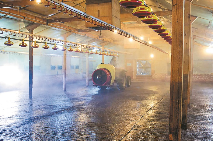 5 Απολύμανση. Χρειάζεται ένα εγκεκριμένο απολυμαντικό, αποτελεσματικό ενάντια στα συγκεκριμένα βακτήρια και ιούς που αναπτύσσονται στα ορνιθοτροφεία. Προτείνεται να ακολουθούνται πάντα οι οδηγίες του κατασκευαστή και του συμβούλου εκτροφής, αν υπάρχει.