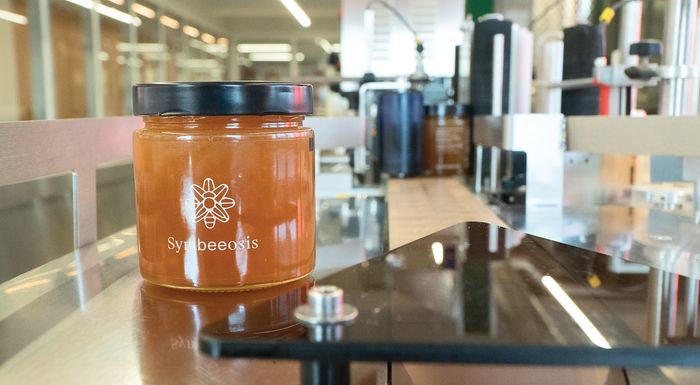 Η παραγωγή γίνεται στο ιδιόκτητο εργοστάσιο της Symbeeosis στο Μαρκόπουλο Αττικής, το οποίο εκτείνεται σε 1.000 τ.μ. Όπως μας εξηγεί ο διευθυντής Παραγωγής, Γιώργος Καφούρος, σε ό,τι αφορά το μέλι, η δυναμικότητα του εργοστασίου ανέρχεται αυτήν τη στιγμή σε 1,4 τόνους/ημέρα ή 250 τόνους/χρόνο και συσκευάζεται σε βαζάκια των 280 και 525 γραμμαρίων. «Ο τεχνολογικός εξοπλισμός επαρκεί για να επεξεργαστούμε ακόμα και 350 τόνους σε ετήσια βάση, ωστόσο, όπως γνωρίζετε, το βιολογικό μέλι που παράγεται στην Ελλάδα δεν ξεπερνά σήμερα τους 80 τόνους μέσα στο έτος», επισημαίνει.