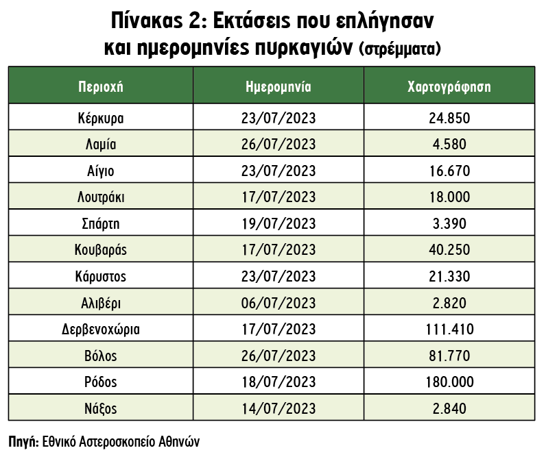 Μετά την ολοκλήρωση του καταστροφικού έργου των πυρκαγιών, οι οποίες εξαφάνισαν πολλές δεκάδες χιλιάδες στρέμματα αγροτικών και δασικών εκτάσεων, αλλά με τον κίνδυνο για νέες καταστροφές να καιροφυλακτεί, έφτασε η ώρα του θλιβερού απολογισμού. Συνολικά στη χώρα, σε Αττική, Ρόδο, Πελοπόννησο, Μαγνησία, Στερεά Ελλάδα και άλλες περιοχές, σύμφωνα με τα πλέον πρόσφατα στοιχεία του Εθνικού Αστεροσκοπείου Αθηνών που εξασφάλισε η «ΥΧ», οι φωτιές πέρασαν από 507.910 στρέμματα γης.