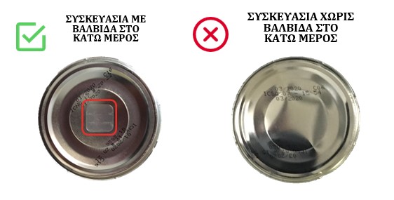 Οι ελαττωματικές συσκευασίες είναι εύκολα αναγνωρίσιμες διότι δεν διαθέτουν τη βαλβίδα εκτόνωσης πίεσης στο κάτω μέρος και μπορεί να ανιχνευθεί μια ανώμαλη διόγκωση στη συσκευασία (βλ. κάτωθι φωτογραφίες).