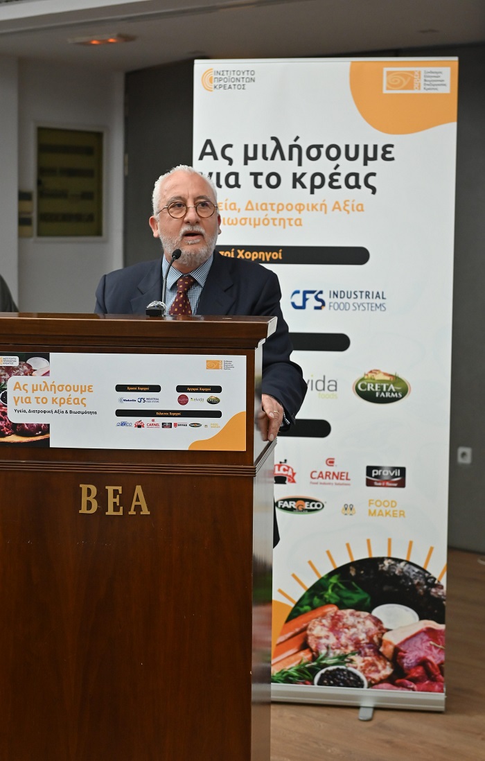 Στην εκδήλωση, την οποία διοργάνωσαν το Ινστιτούτο Προϊόντων Κρέατος – ΙΠΚ και η Συμβουλευτική Επιτροπή Εμπειρογνωμόνων του Συνδέσμου Ελληνικών Βιομηχανιών Επεξεργασίας Κρέατος – ΣΕΒΕΚ, την Τετάρτη 18 Οκτωβρίου 2023, στην κατάμεστη Αίθουσα Εκδηλώσεων του Βιοτεχνικού Επιμελητηρίου Αθηνών.