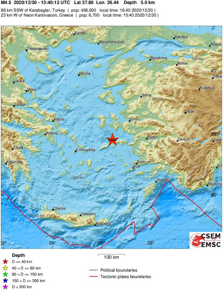 Σεισμός 4,5 ρίχτερ μεταξύ Ικαρίας και Σάμου