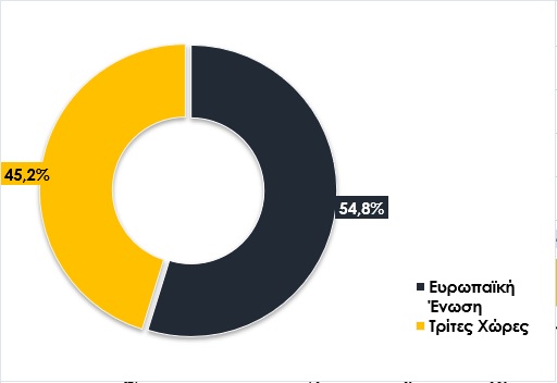 Γράφημα 2. Ποσόστωση εξαγωγών σε χώρες της ΕΕ και Τρίτες Χώρες, Ιανουάριος-Αύγουστος 2023/2024