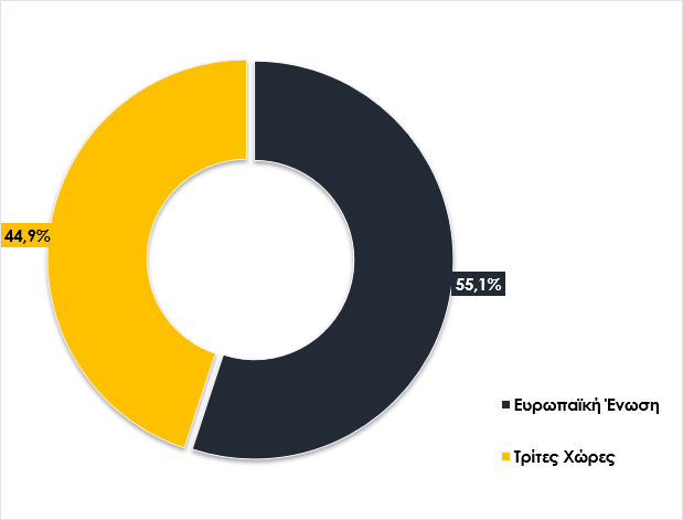 Γράφημα 2. Ποσόστωση εξαγωγών σε χώρες της ΕΕ και Τρίτες Χώρες, Ιανουάριος-Οκτώβριος 2023/2024