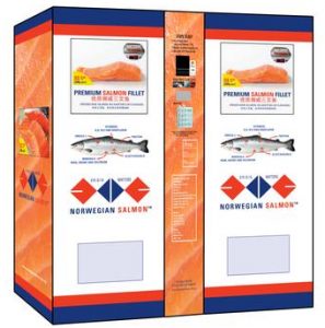 Τον περασμένο Ιανουάριο, στο mall Wisteria στη Σιγκαπούρη εμφανίστηκε ένα καινούργιου τύπου ATM: σε αυτό μπορείτε να κάνετε ανάληψη όχι χρημάτων, αλλά φιλέτων κατεψυγμένου σολομού από τα νορβηγικά φιορδ, βάρους 200 γραμμαρίων το καθένα.