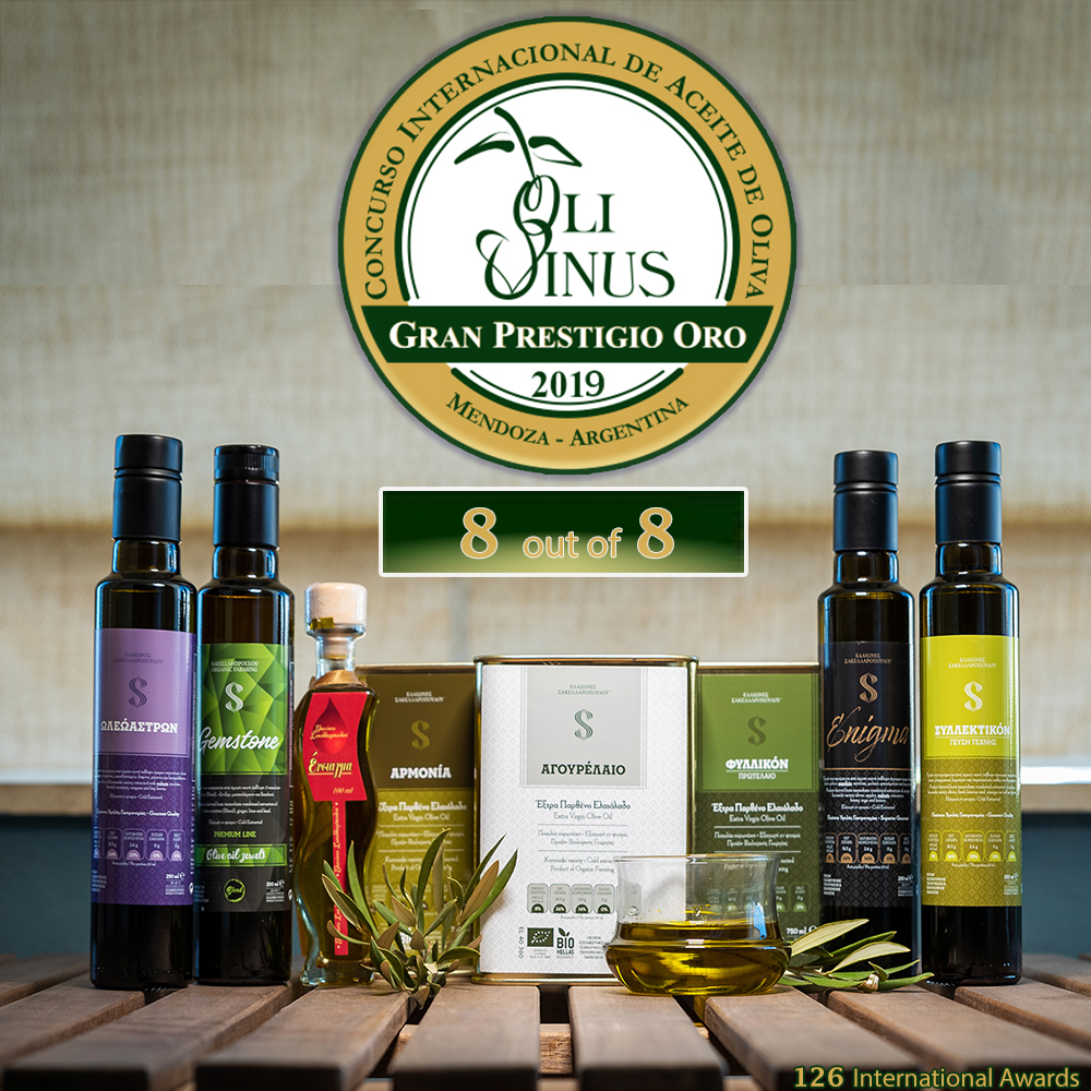 Οχτώ ειδικά βραβεία του τελευταίου παγκόσμιου διαγωνισμού ελαιολάδων της χρονιάς, OLIVINUS 2019, στην πόλη Μεντόζα της Αργεντινής, απέσπασαν οχτώ προϊόντα των βιολογικών ελαιώνων του Σακελλαρόπουλου στη Λακωνία.