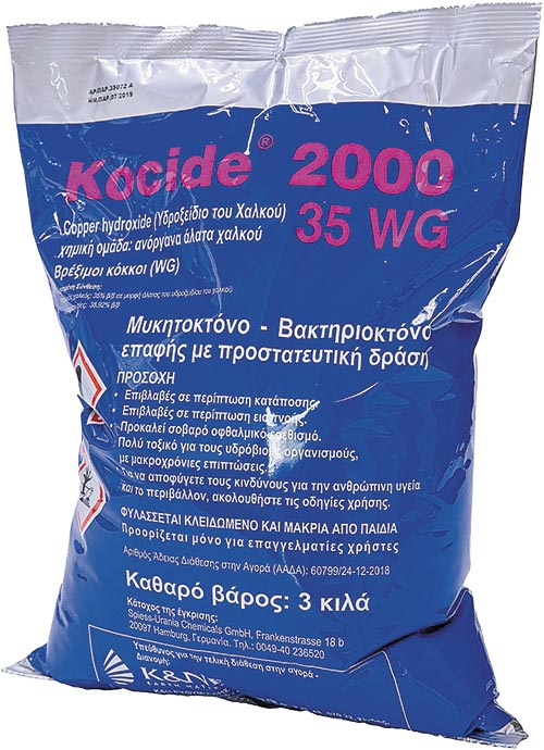 Το Kocide 2000WG, με δραστική ουσία το Υδροξείδιο του Χαλκού, εξασφαλίζει τη βέλτιστη αποτελεσματικότητα σε πλήθος ασθενειών, στα στάδια της καλλιέργειας που απαιτείται ταχεία δράση.