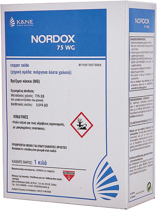 Το Nordox 75WG είναι το μοναδικό σκεύασμα με δραστική ουσία το Υποξείδιο του Χαλκού. Έχει τη μεγαλύτερη διάρκεια δράσης απ’ όλες τις μορφές χαλκού, εξαιρετική αντοχή στην έκπλυση από τη βροχή και υψηλή αποτελεσματικότητα σε πλήθος ασθενειών.