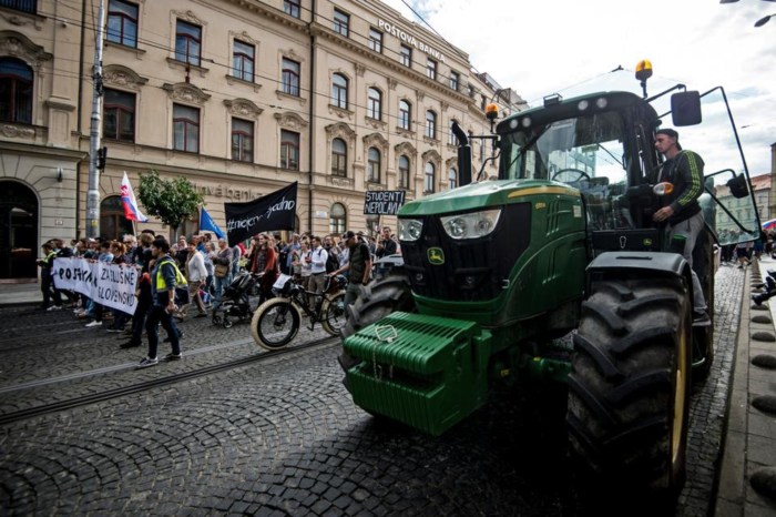 Τα τεκταινόμενα των τελευταίων ημερών επιβεβαιώνουν ότι η αγανάκτηση των αγροτών δεν έχει καταλαγιάσει. Αγρότες από κάθε γωνιά της χώρας έσπευσαν με τα αγροτικά οχήματά τους στην πρωτεύουσα της Σλοβακίας, απαιτώντας τη θέσπιση διαφανών κανόνων για τα δικαιώματα χρήσης της γης και την κατανομή των ευρωπαϊκών επιδοτήσεων. Σε μερικά από τα πλακάτ που «στόλιζαν» τα τρακτέρ τους, αναγραφόταν: «Δώστε πίσω τη γη μας», «Χρειαζόμαστε αγροτική μεταρρύθμιση», «Δώστε στους νέους αγρότες μια ευκαιρία».