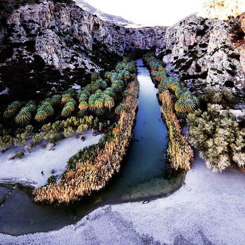 Σπάνια εικόνα από το χιονισμένο Φοινικόδασος της Πρέβελης στην Κρήτη